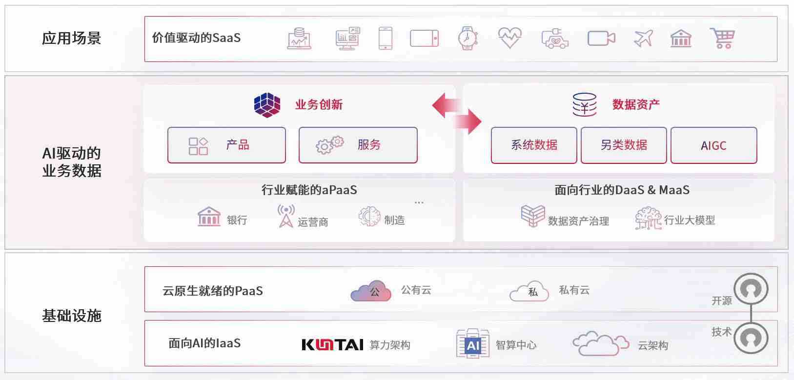 数字时代,,,,围绕企业数字化转型的关键要素,,,,新葡的京集团35222vip数码开创性的提出数云融合战略和技术体系框架,,着力在云原生、、、、数字原生、、、、AI原生和信创产业上架构产品和服务能力,,为处在不同数字化转型阶段的快消零售、、、、汽车、、、、金融、、医疗、、政企、、、、教育、、、运营商等行业客户提供泛在的敏捷IT能力和融合的数据驱动能力,,,构建跨界融合创新的数字业务场景和新业务模式,,,,助力企业级客户建立面向未来的核心能力和竞争优势,,,,全面推动社会的数字化、、、、智能化转型升级。。。