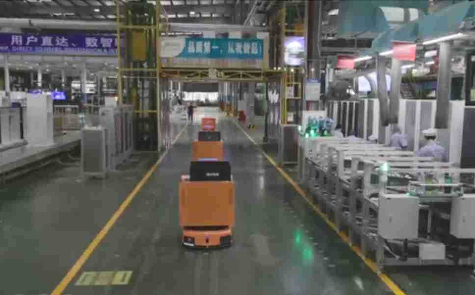 为车载冰箱物流配送打造的智能解决方案,,包含产中物流通过潜伏举升AMR搬运至线边,,产后成品物流智能仓储,,,流程包含产中物流智能齐套入库,,,线边安灯叫料AMR智能配送至线边,,成品入库、、、出库,,,通过无人堆高车机器人,,,智能仓储管理替代人工作业管理,,,实现更高存储、、、更高效率、、、更具柔性化的解决方案。。